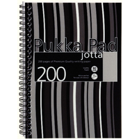 Pukka Jotta Polypropylene cover notebooks with Black stripes. Features 200 pages of feint and margin 80 gsm high quality white paper perforated for easy removal, and wirebound covers that lie flat when open. Size: A5.