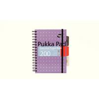 Pukka pads A5 Pukka Executive Metallic Project book 6336-met Durable hardback covers, twin wire bound. 5 tinted removable storage dividers. Note and world map page. Elasticated closure. Assorted coloured packs. 200 perforated pages of 80gsm paper.