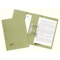 Strong 285gsm manilla. Metal spiral fitting secures punched papers. Clever transfer mechanism allows papers to be worked on without the need to remove them. Useful pocket on inside front cover. Foolscap, 350 sheet capacity. Colour: Green.