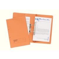 Strong 285gsm manilla. Metal spiral fitting secures punched papers. Clever transfer mechanism allows papers to be worked on without the need to remove them. Useful pocket on inside front cover. Foolscap, 350 sheet capacity. Colour: Orange.