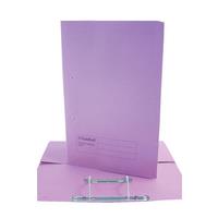 Strong 285gsm manilla. Metal spiral fitting secures punched papers. Clever transfer mechanism allows papers to be worked on without the need to remove them. Useful pocket on inside front cover. Foolscap, 350 sheet capacity. Colour: Mauve.