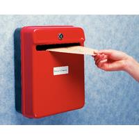 Helix Post Suggestion Box. High quality plastic front with steel back which can be fixed to either the wall or door. Water resistant, includes lock and 2 keys and is supplied with 4 fixing screws. Dimensions - W235xD130xH310mm. Colour - Red.