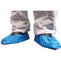 CPE deeply embossed Overshoes with elasticated edges. Manufactured in accordance with European PPE Directive 89/686/EEC. Ideal for use in clean rooms, estate agents, hospitals, laboratories, manufacturing, nurseries, swimming pools and sports centres.