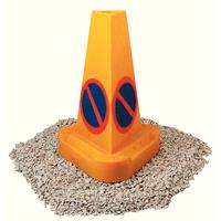 Triangular traffic cone for imposing waiting restrictions. Designed in eye-catching hazard yellow. Printed with red and blue no waiting sign. Made from sturdy polyethylene. Sand-weighted base for stability. Pack of 1 cone.